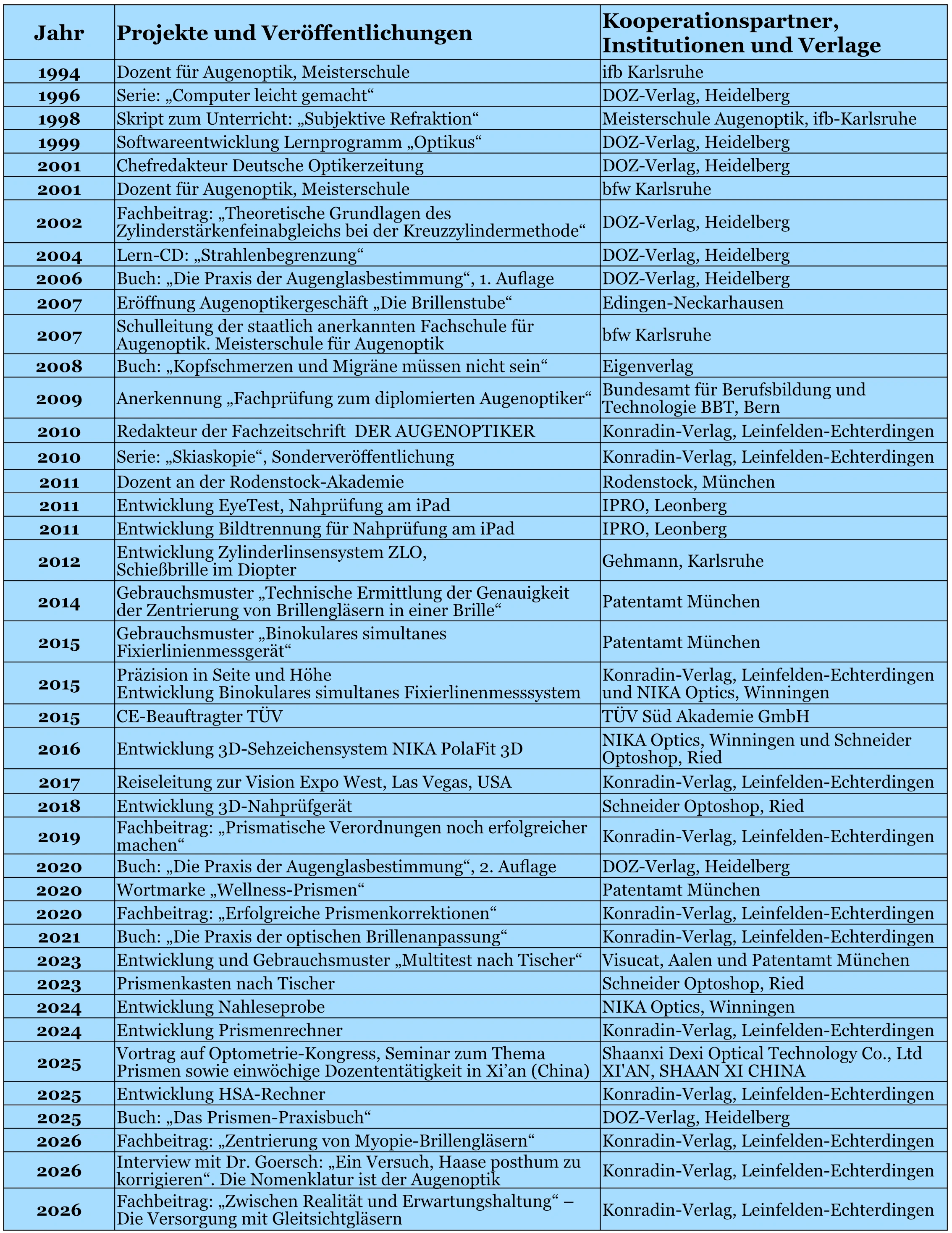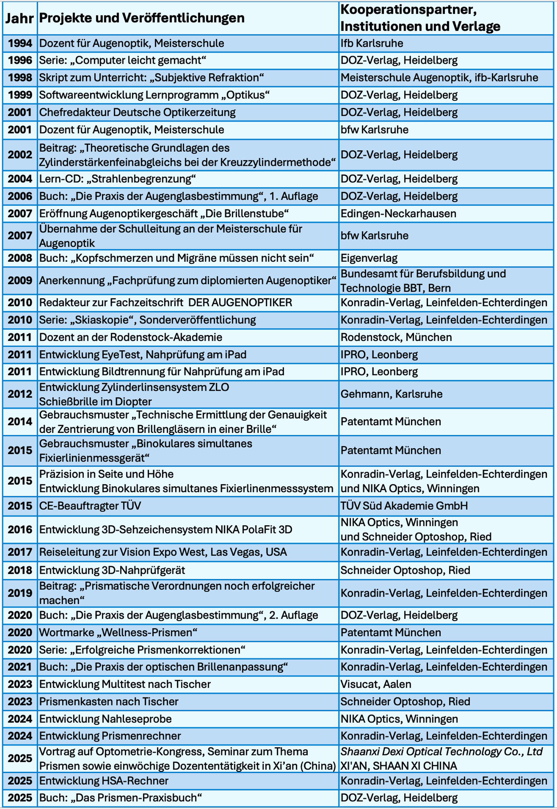• Direktor der Meisterschule für Augenoptik in Karlsruhe am bfw seit 2006